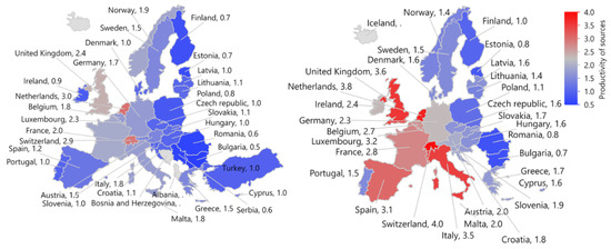 Analysis of the published results in the database Eurostat of the indicator during 2000–2018 in EU member states had been evaluated from the view of success of each country orientation in an effort to use the resources effectively. With the use of a cartographer it is possible to make visual comparisons of the countries. In 2006, Switzerland and the Netherlands belonged to the countries with the highest values of the indicator. Ten years later there is considerable change in the color scale of the countries, but still the best results are recorded in Switzerland and Netherlands. However, some additional countries are entering to this group, such as Italy, England, Spain and France (Figure 1).