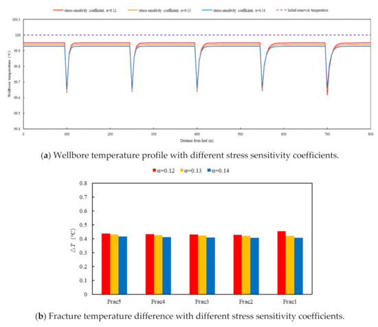 Wellbore temperature profiles and with different stress sensitivity coefficients.