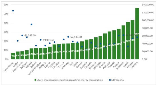 - Komarnicka, A.; Murawska, A. Comparison of Consumption and Renewable Sources of Energy in European Union Countries—Sectoral Indicators, Economic Conditions and Environmental Impacts. Energies 2021, 14, 3714. [Google Scholar] [CrossRef]