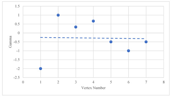 As in Table 1, the degrees of vertices , and are the same. However, when the average neighbourhood degree of those vertices is considered along with the degree of the vertices, their corresponding values differ. The plot of for every vertex of an IEEE seven-bus system is given in Figure 1. Based on these values, the vertices are segregated as influential and non-influential sets. Figure 1 also depicts the segregation of vertices as influential and non-influential sets.