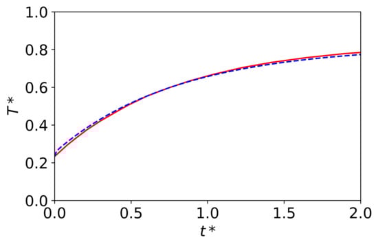 The resistance of the thermal interface material is often an unknown quantity while modeling a battery pack as this information is withheld by the battery supplier. For this reason, data from the heat-up test of the battery pack were used to estimate its value. The battery pack with the initial temperature of (where and is a randomly chosen reference temperature) was heated by the coolant at flowing at (where and is a randomly chosen reference volume flow rate) and the average pack temperature was measured. The battery pack was inactive and so there was no heat generated from it. The thermal resistance was optimized in the model using the Nelder–Mead optimization approach [30] with the objective to minimize the difference between the experimental and simulation values for the average pack temperature.