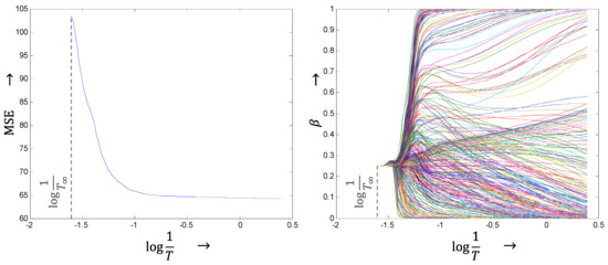 Initial investigations were carried out to draw insights into the convergence properties of the DNNE. Figure 3 shows the behavior of the learning algorithm as the Boltzmann parameter , which is initialized to a high value of , progressively decreases at the end of each training epoch. Figure 3 (left) shows how the MSE (scaled up by a factor ) drops steadily with decreasing . Figure 3 (right) shows the evolution of the quantities . They are initialized to identical values of as in (8), so that the outputs of all sub-networks are weighted equally, as seen in (2). It can be observed that for each input , the steadily increases for only a single sub-network in , while simultaneously decreasing for the remaining ones. Upon termination, when the MSE saturates to its asymptotic value, the values of are differentiated enough to assign the samples to their eventual partitions. More interestingly, for a few initial training epochs, the s do not show any perceptible differences. The onset of differences can be observed beyond a certain critical threshold (). This observation is consistent with spin glass models in statistical physics where there exists a critical temperature below which particle spins within each domain align in the same directions. Although only the results of city D are shown in Figure 3, those of the other cities followed very similar patterns.