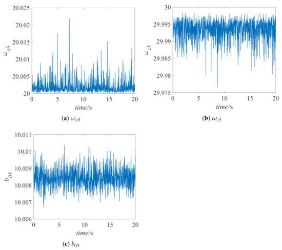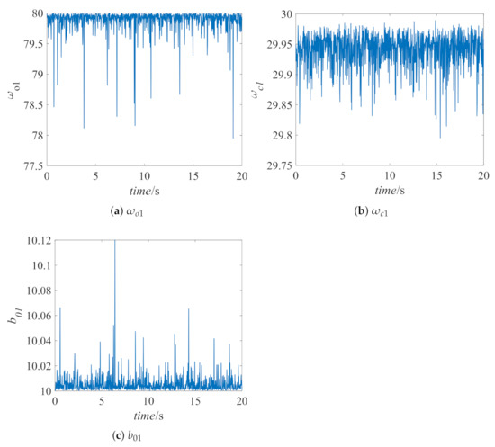 where , , , and denote the estimated values of , , , and , respectively. Furthermore, , , , and represent the observer gains. We write the observer gain matrix as . Then, the suitable L can guarantee the accuracy of the estimation. For convenience, we configure the observer gain at the pole [33] using the pole configuration method as
