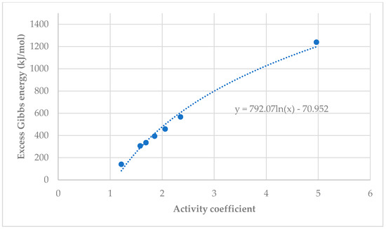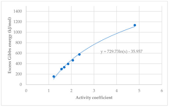 Differential scanning calorimetry analysis was used to calculate the activity coefficient in Equations (3) and (4). The Excess Gibbs Energy can be calculated by:
