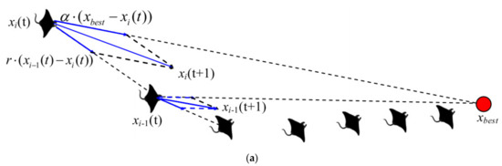 In the MRFO algorithm, manta rays follow plankton by tracking its position. A better position indicates more plankton in that position. In each iteration, each manta ray is updated based on the best current solution and the solution before it is updated. The mathematical model of chained search strategy is defined as follows [31,32]:
