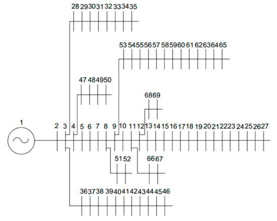 Schematic of IEEE 69-bus distribution network.
