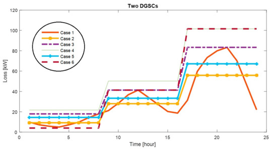 Curve of daily energy losses for different cases with two DGSCs.