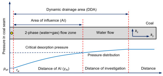 - Two phase flow in the coal fracture is modelled using the Darcy law;