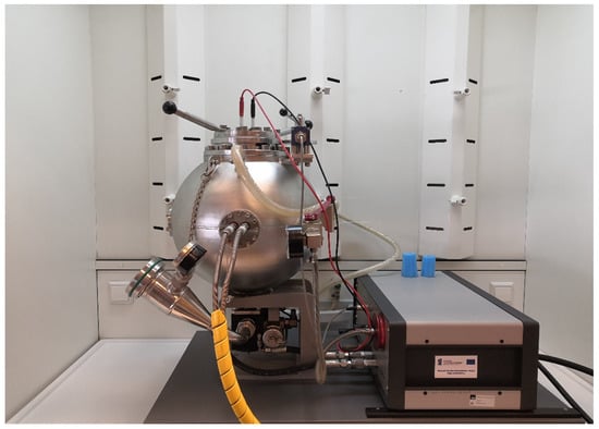 The basic physicochemical parameters of the materials that were assessed included the total content of carbon, ash, nitrogen, hydrogen, volatile substances, and calorific value. The examinations were performed with a LECO TGA 701 thermogravimetric analyser, a LECO TrueSpec CHN elemental composition analyser (LECO, St. Joseph, MI, USA), and a LECO AC 500 isoperibolic calorimeter (LECO, St. Joseph, MI, USA). The method to determine the fixed carbon released on calculations based on the assessment of volatiles according to FC = 100 − (%moisture + %volatile substances + %Ash). Explosivity tests were conducted using a KSEP20 device, provided with a KSEP 310 control unit (Kuhner AG, Basel, Switzerland). The device comprises a test chamber with a spherical shape and a volume of 20 dm3. Owing to its water jacket, the heat of explosions is dissipated, and thermostatically controlled test temperatures are maintained (Figure 1).