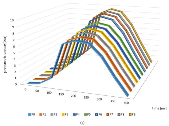 Explosion pressure curves identified for the branches and biochar samples ((a)—apple, (b)—cherry, (c)—pear).