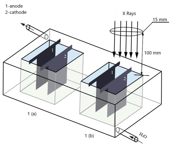 Electroplating was carried out in the thermostatic bath with two cells of 100 mL (Figure 1). One cell was used for depositing coatings under X-rays’ irradiation, effecting the electrolyte directly. Another cell was used for the deposition of reference coatings.