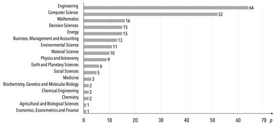 Number of publications on the DT applied in internal transport systems (including digital shadows and digital mirrors) according to subject area, 2003–2020 (n = 110). Source: own elaboration based on Scopus.
