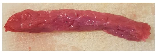 Longer storage and the associated extension of a food product’s shelf life is important from the point of view of the organization of the production process and for the distribution of finished products. Obtaining acceptable durability and shelf-life is possible thanks to the application of, among others, thermal preservation processes. One of the oldest and commonly used methods of meat preservation is the process of drying. It consists of reducing the amount of water in meat tissues, thus limiting its susceptibility to microbial proliferation and slowing down the rate of chemical reactions occurring in meat [1]. Correctly selected drying temperature yields the same results as adding preservatives or maintaining the correct pH level, limiting the ability of microorganisms to multiply [2]. Evaporation of water from meat tissue happens at temperatures no higher than 65 °C [3,4,5].