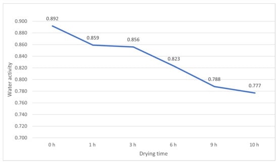 As mentioned above, beef jerky should be characterized by adequately low values of meat dryness and water activity. Therefore, drying was performed until the mean Aw value of less than 0.75 and moisture content of less than 25% were obtained [9,20].