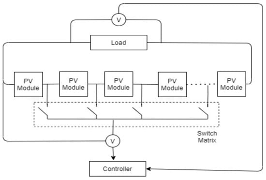 In [], an accurate method for detecting PSCs is proposed. In this method, a voltage sensor is positioned on the terminals of each PV module. When the panel voltage drops by more than 1 V, a PSC is alerted. The author of [] employed the concept of [] but with only one voltage sensor. The author used an automatic switching matrix and a controller to measure the voltage across each PV panel. Figure 1 illustrates the block diagram of the proposed method. These methods, however, are incredibly expensive and are not practical for large array sizes.