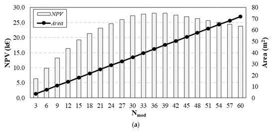As stated in the previous section, the optimal number of modules for each user can be calculated with the aim of maximizing the profitability of the investment in terms of NPV, calculated by means of Equation (10). The values of all the parameters necessary for this analysis are resumed in Table 4 [28,29].