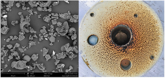 SEM image of recovered powdered sample (left), skim milk powder deposition on the bottom wall (right).