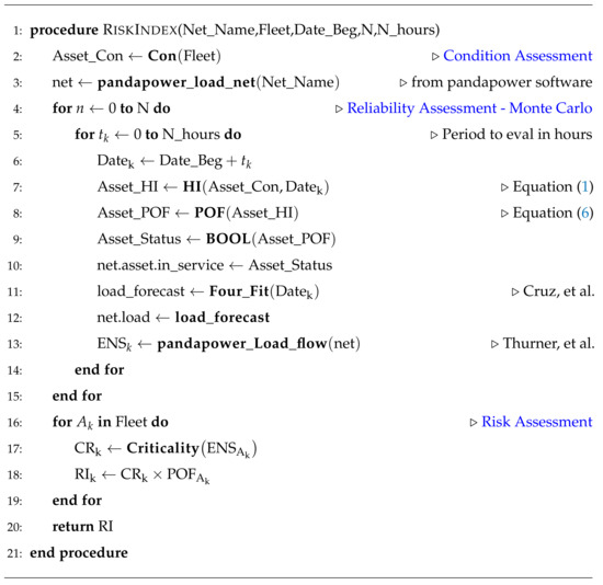 Proposed pseude-algorithm for risk assessment of an electric asset fleet.