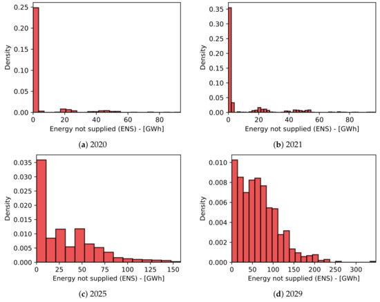Histogram of the expected accumulated energy not supplied for each period of planning.