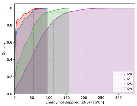 Cumulative probability of the expected energy not supplied by year.