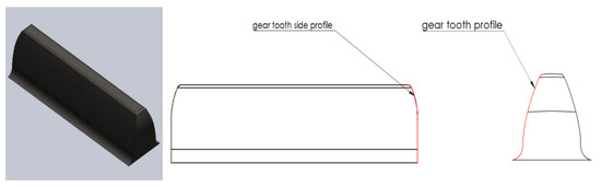 The third option is adopted in this study because no explicit mathematical expressions of the teeth root shape are available and experimental methods require sophisticated machines and tools to extract gear teeth profiles from real gears. The CAD models of two commercialized gears were downloaded from the constructor website (KHK-Gears) and the corresponding gear tooth shape was extracted using a CAD software (SOLIDWORKS), as shown in Figure 3.