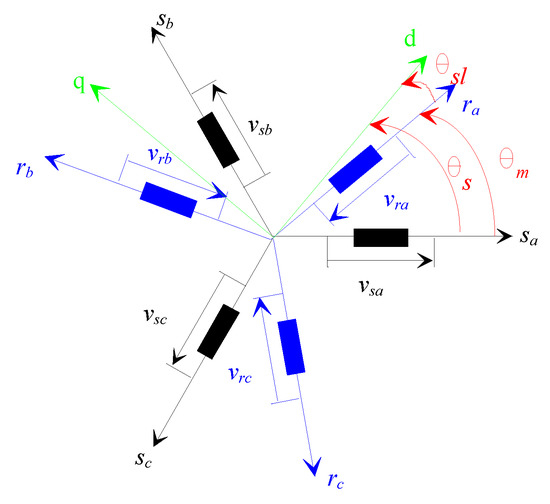 With and are the resistance of the stator and rotor winding, respectively. , instantaneous voltages across the stator phases. , instantaneous currents flowing in its phases. the stator and rotor fluxes.