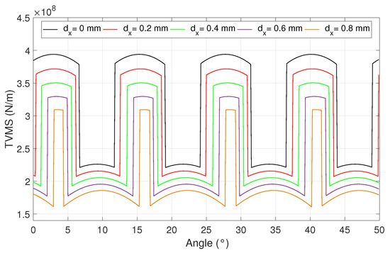 - The center distance error considerably affects the TVMS curve, and increasing the center distance causes a global reduction in the TVMS magnitude; it also affects the contact ratio by reducing the proportion of the double-contact period, and consequently, the gear teeth will be subjected to more important stresses;