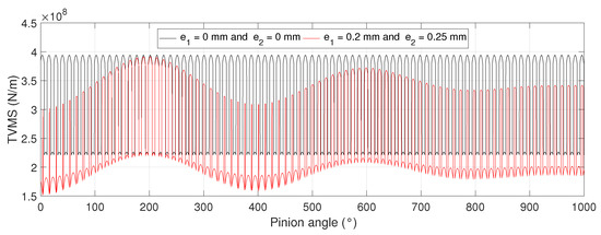 - The effect of single-eccentricity and double-eccentricity errors on the TVMS was determined; it was found that an eccentricity error causes a double modulation of the TVMS amplitude and frequency by the frequency of the eccentric gear;