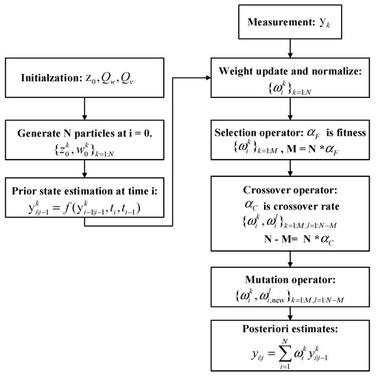 In statistics, particle filtering is called the sequential Monte Carlo method, which combines the Bayesian principle and importance sampling [26]. It uses sample form instead of function form to describe the probability distribution of nonlinear stochastic systems [27].