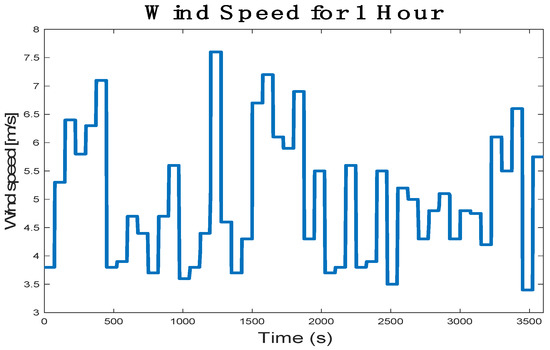 A series of wind speed steps were utilized to push the drivetrain system to its limit in order to verify the robustness of control system performance. Each speed level indicates the mean wind speed at the hub height and lasts for about 80 s. In total, a 60 min operation was simulated. Figure 4 illustrates the wind speed step changes.