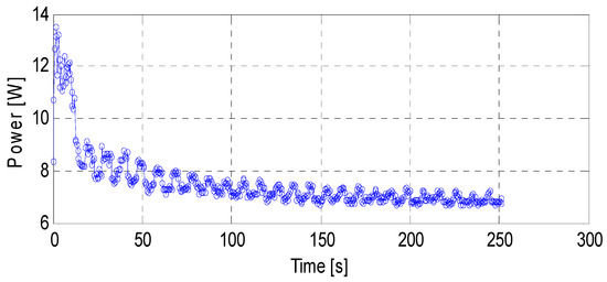 Power consumption during Bosch coring bit test performed on Szydłowiec sandstone A—soft sample with motor’s power supply voltage 24 V and weight on bit (WOB) 105.75 N.