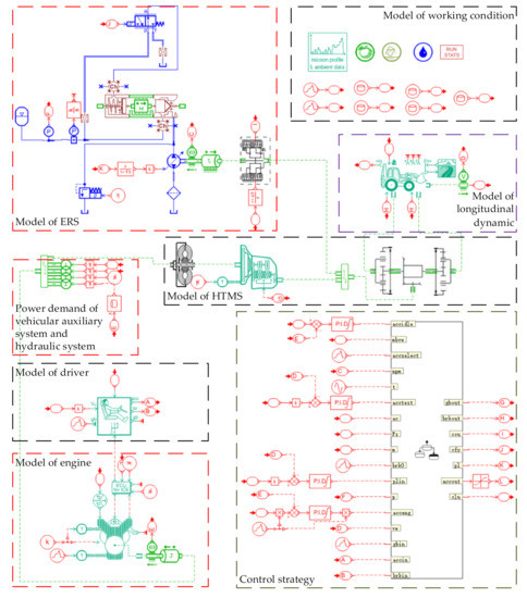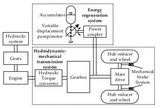 - Yang, Y.; Luo, C.; Li, P. Design and performance analysis on a new electro-hydraulic hybrid transmission system. Int. J. Electr. Hybrid Veh. 2017, 9, 134–150. [Google Scholar] [CrossRef]