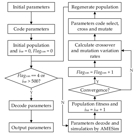 - Parameters decode and simulation by AMESim: The decoded individuals in the population are input into the model for simulating by AMESim;