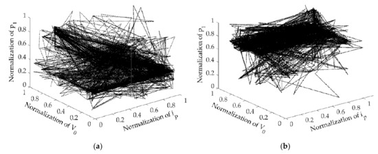 - Population fitness and iter = iter + 1: The fitness of the individuals in the population are calculated according to the Equation (23) and the number of iterations iter is increased by 1;