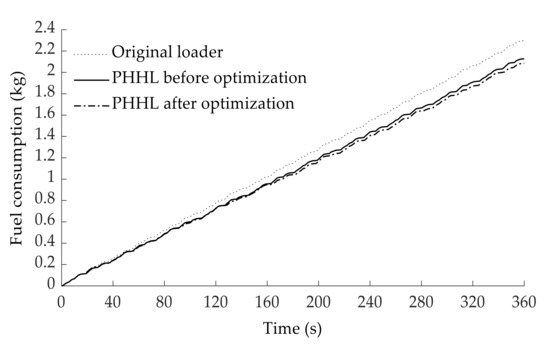 - The reduction of fuel consumption of the developed PHHL as compared to the original loader was acquired during the initial parameter matching of the ERS. Comparative analysis indicated that the fuel consumption of the developed PHHL structure was decreased by 7.44% in relation to the original loader.