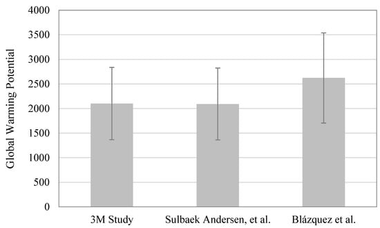 While there is variability in the GWP values resulting from these independent studies, the values are well within the uncertainty reported by IPCC of ±35% [] as shown in Figure 4. The average lifetime and GWP values from the 3 studies are 31 years and 2260, respectively, which agree well with the original values report by 3M. On this basis, 3M continues to report the lifetime and GWP values derived from their internal studies of 30 years and 2100, respectively.