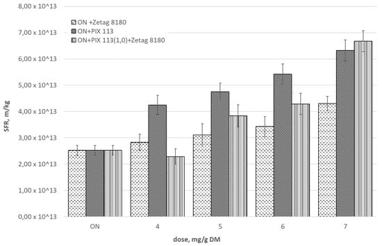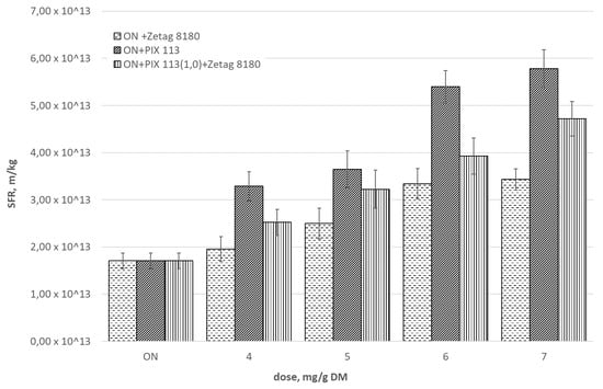 Effect of the dose of selected chemicals on SFR of sonicated sludge (A2 = 45.75 μm).