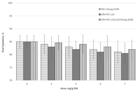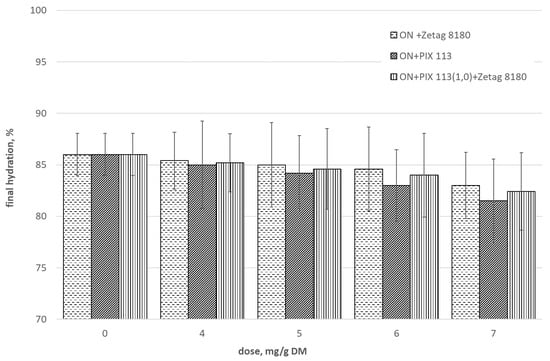 Effect of the dose of selected chemicals on the final hydration of prepared sludge (A1 = 15.25 μm).