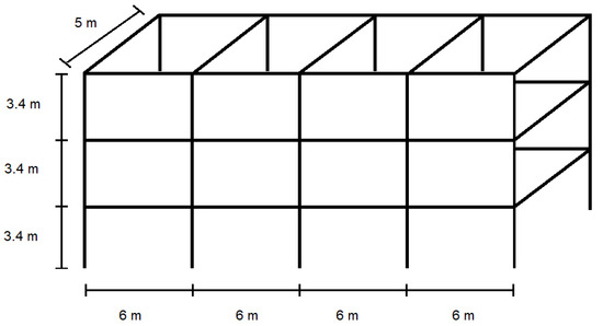 The benchmark reinforced concrete structure (Figure 2) was calibrated to be representative of residential low-rise building, performing the structure considered in [1] and called S1, with three floors (3.4 m each). Four columns in longitudinal direction (6 m spaced) and 2 in transversal direction (5 m spaced). The columns and the beams have been modelled with elastic beam column elements using the properties shown in Table 1.