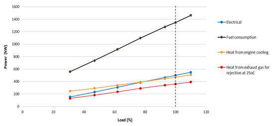 where is the electrical efficiency, is the thermal efficiency, is the thermal efficiency from exhaust gas, is the thermal efficiency from engine cooling, and (kWh) is the natural gas consumption.