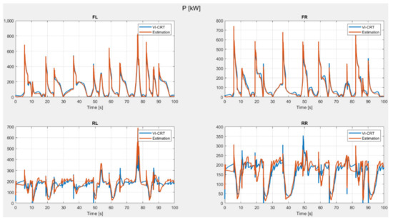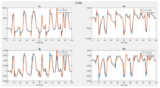 Figure 5. Therefore, a good estimation of tire forces leads to a good estimation of the total sliding power (see Equations (40)–(47)) and hence tire energy. This is also proven by
