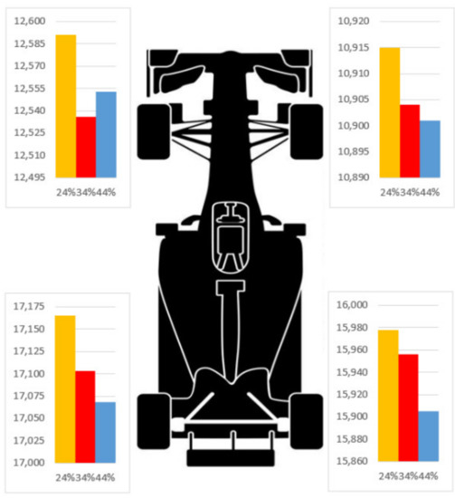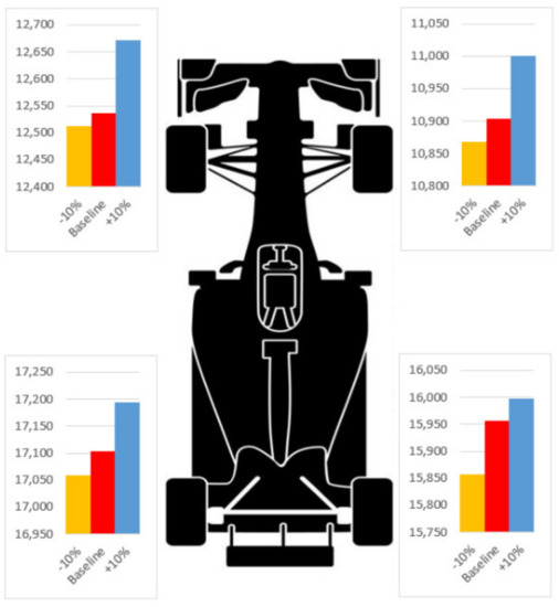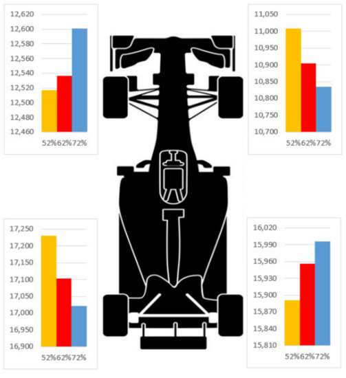 Finally, increasing the overall downforce level increases the energy on all four tires as the vehicle gains more grip and hence is able to develop higher longitudinal and lateral accelerations.