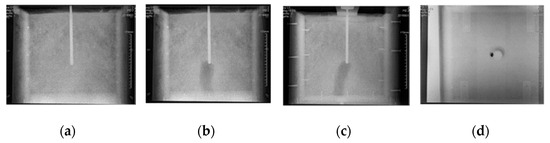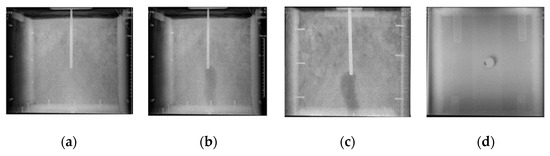 Images of soil with the same resistivity and different water content: (a) The moisture is 23.56%; (b) moisture is 39.14%; (c) moisture is 40.50%; (d) moisture is 48.80%.