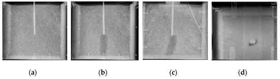 Images of modified soil with water content of 10%: (a) Before breakdown; (b) front view; (c) side view; (d) top view.