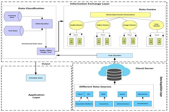 The proposed architecture is divided into three layers, such as the acquisition layer, the application layer, and the information exchange layer, as shown below in Figure 1.