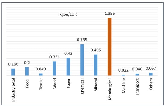 Actions to improve energy efficiency should include all possible measures aimed at achievement of the basic goal (e.g., technological, economic, fiscal, price, organisational, administrative and others). In line with EU energy policy, Poland has started to reduce CO2 emissions and increase the consumption of energy from renewable sources (green energy) throughout the whole economy. The activities of the Polish government in the field of energy policy are presented in a document outlining their energy efficiency policy: “Poland’s Energy Policy until 2030”. In recent years, activities in the field of diversification of energy sources have been identified. This was done in accordance with the EU “Green economy” policy, which aims to reduce waste—and thus costs—as well as redefine sustainable development [,,]. The latter is a basic direction of changes [] and is also associated with the implementation of the assumption that a Circular Economy is in operation among European countries (e.g., [,,]). The iron and steel industry cannot remain indifferent to these changes. Two categories of factors are particularly important (and, at the same time, are strongly related to each other): economic and legislative factors. This means that the economy and law determine the actions of manufacturing companies in their efforts to improve energy efficiency and that increasing energy efficiency is a strategic goal of a sustainable production policy, regardless of the sector of activity. The list of environmental aspects in the steel industry in Poland is long. In addition to those aspects that are directly related to the environmental impact of production (e.g., CO2 emissions), key aspects in the area of resource intensity are also classified [,]. Awareness of these environmental aspects, together with technological knowledge, should be foremost in the decision-making centre of the steel industry [].