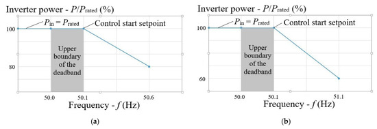 - the PVP control system must provide a frequency-tracking primary control and change the active power output in proportion to the current frequency deviation beyond 50.1 Hz.