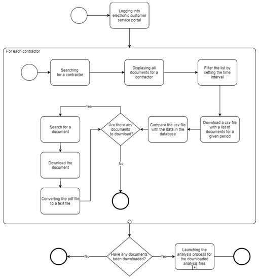 - Minimal interference with the robotically automated business process: only a single change was introduced—the electricity billing documentation was no longer provided in paper form; it was made available by the electricity supplier and the electricity distributor through their dedicated portals (electronic customer service centers) in PDF file form. Conducting an in-depth restructuring of this process could have significantly extended the project completion time while not necessarily bringing much greater business benefits.