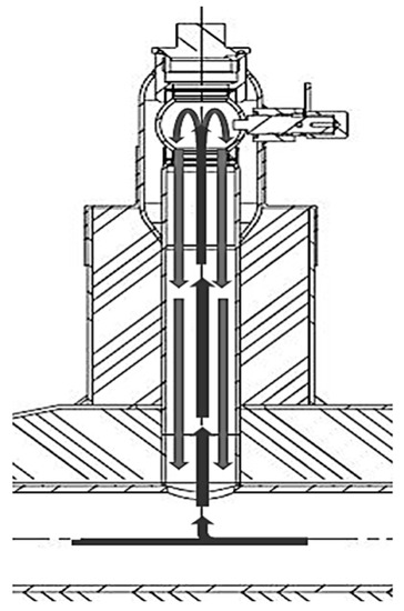 From Figure 13 it can be seen that the thermal response time is faster in the drainage valve (43 min) than in the shutdown valve (337 min) during the second shutdown. Similar results are observed for shutdowns 1 and 3, where the response times for the drainage valve are 70 and 33 min, respectively, and for the shutdown valve are 510 and 270 min, respectively. The faster response time in the drainage valve is thought to derive from convective water movement within the drainage valve, which constantly supplies the upper part of the valve with hot water from below at a temperature close to the supply pipe temperature. Without the convective heat transfer, the high absolute temperatures cannot be explained. The low thermal conductivity of water in comparison with stainless steel would in that case result in a smaller temperature change than that of the shutdown valve. The shutdown valve’s longer thermal response time is reasonable and can be confirmed by the calculations based on the error function (see Figure 7). Results from the shutdown valve suggest that the manhole temperature has a greater impact on the resulting temperature than does the supply temperature, as also captured by the matching factor.