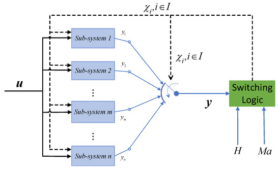 The uncertain switched system structure is shown in Figure 1. For each subregion, engine dynamics were described by a subsystem like the one shown in Equation (5). Therefore, the nonlinear system (1) can be approximated by the uncertain switched system. It should also be noted that each subregion has a deterministic boundary, which means that there is no intersection between the adjacent subregions.